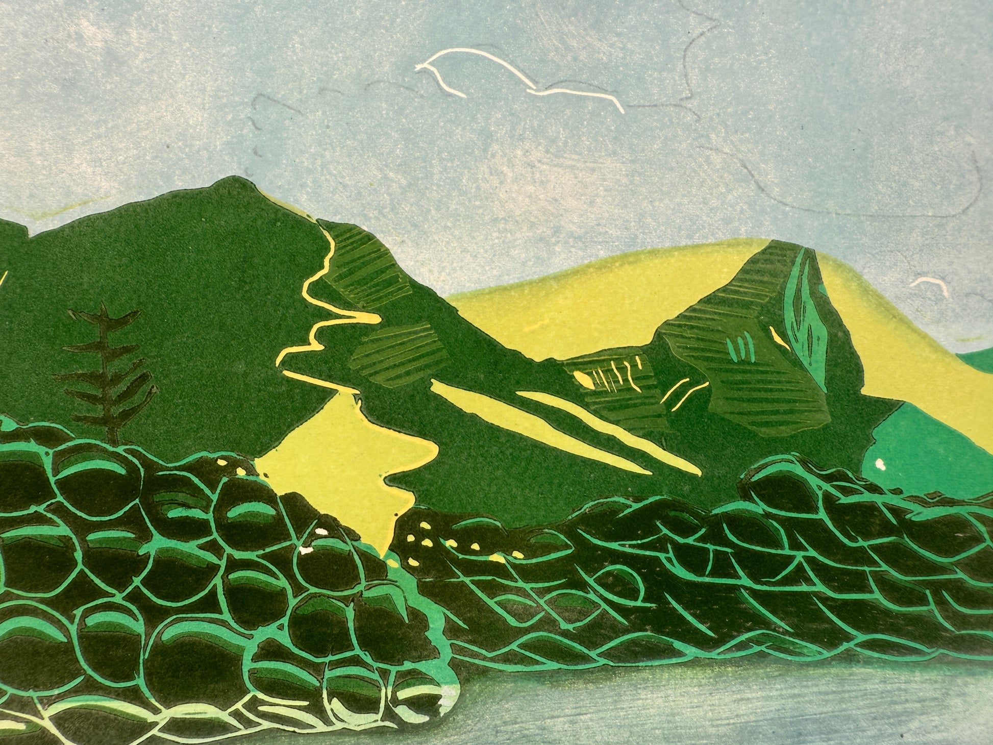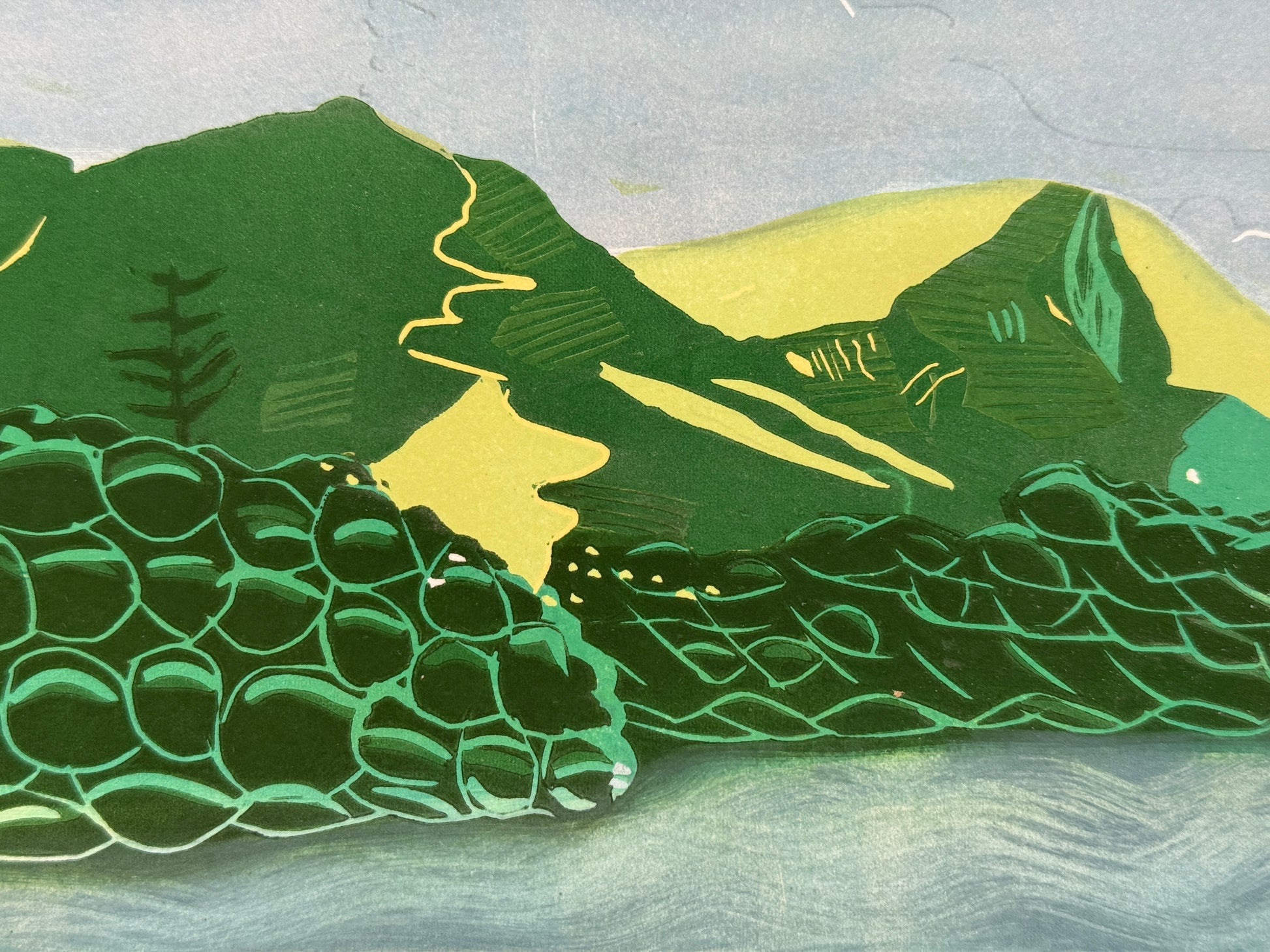 Colour reduction linocut print