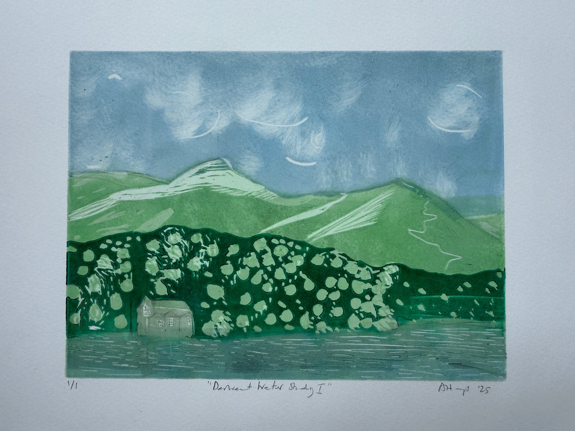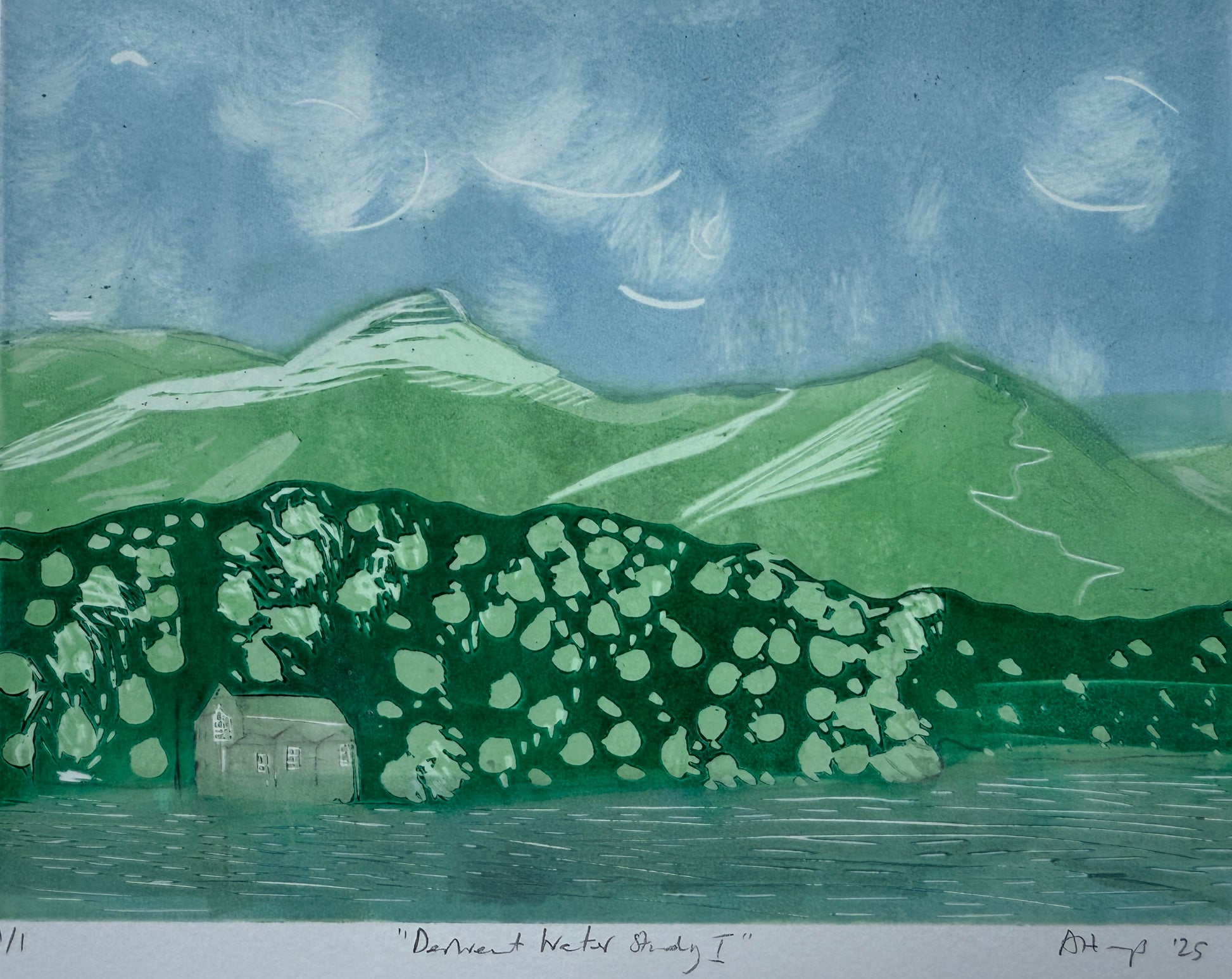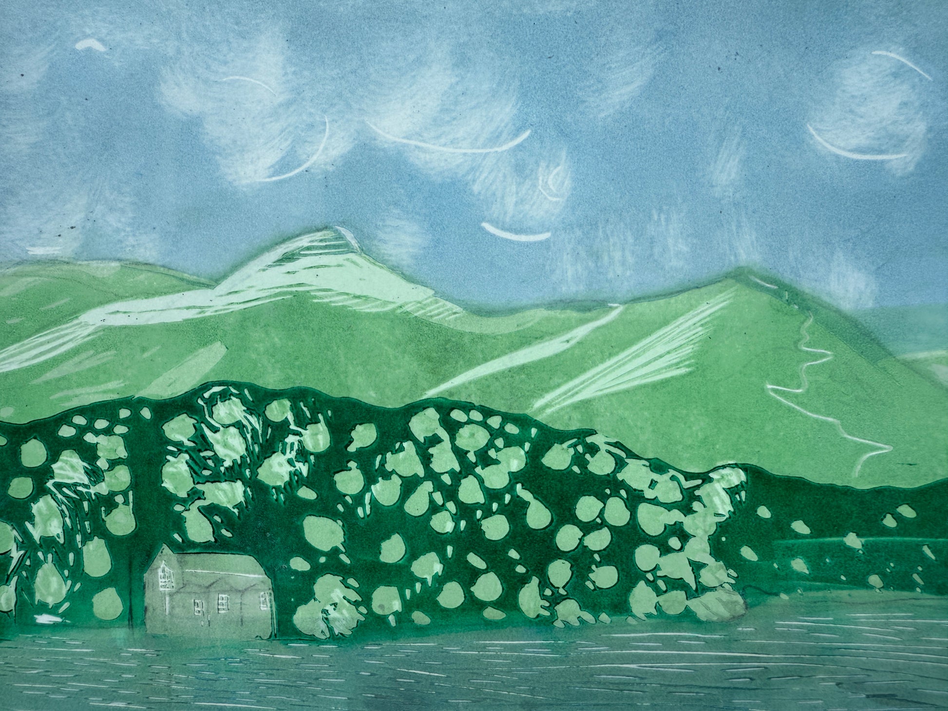 The view takes you across the lake to Derwent Isle's The Chapel and boat house.