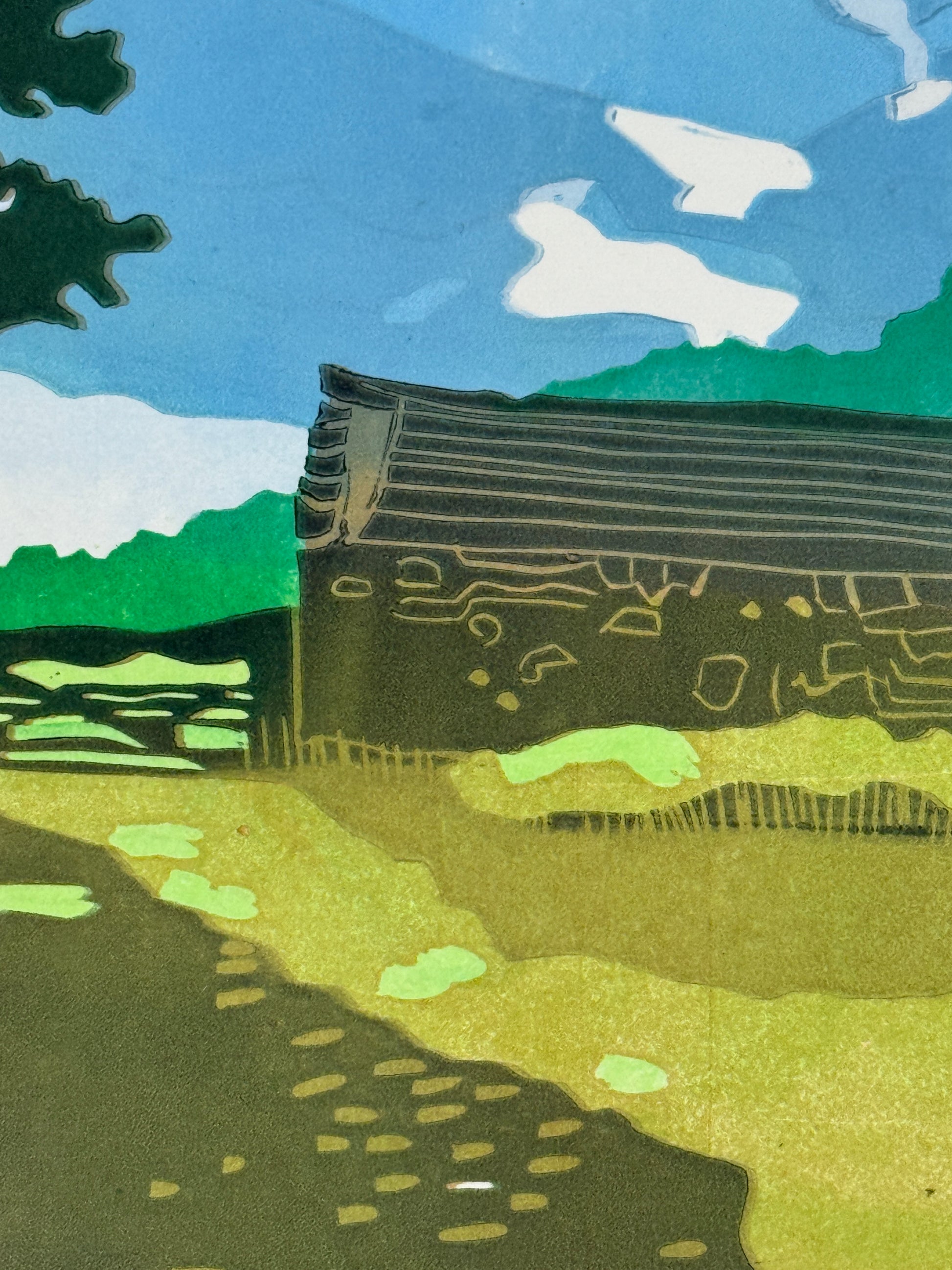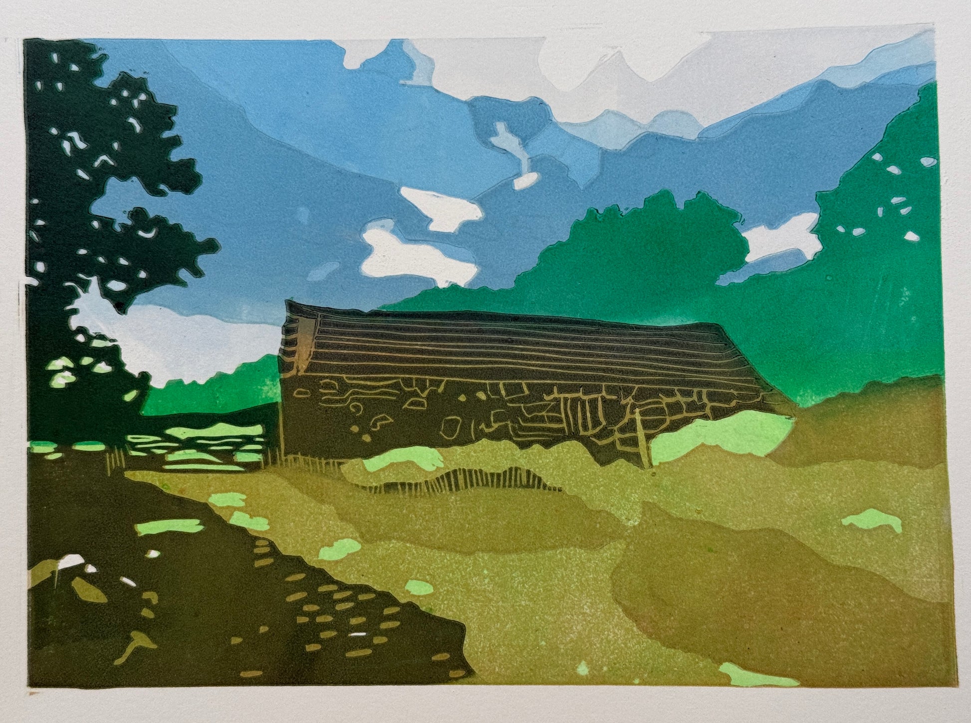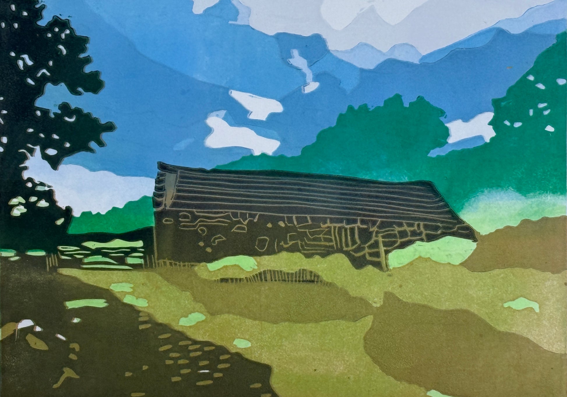 Colour reduction linocut print
