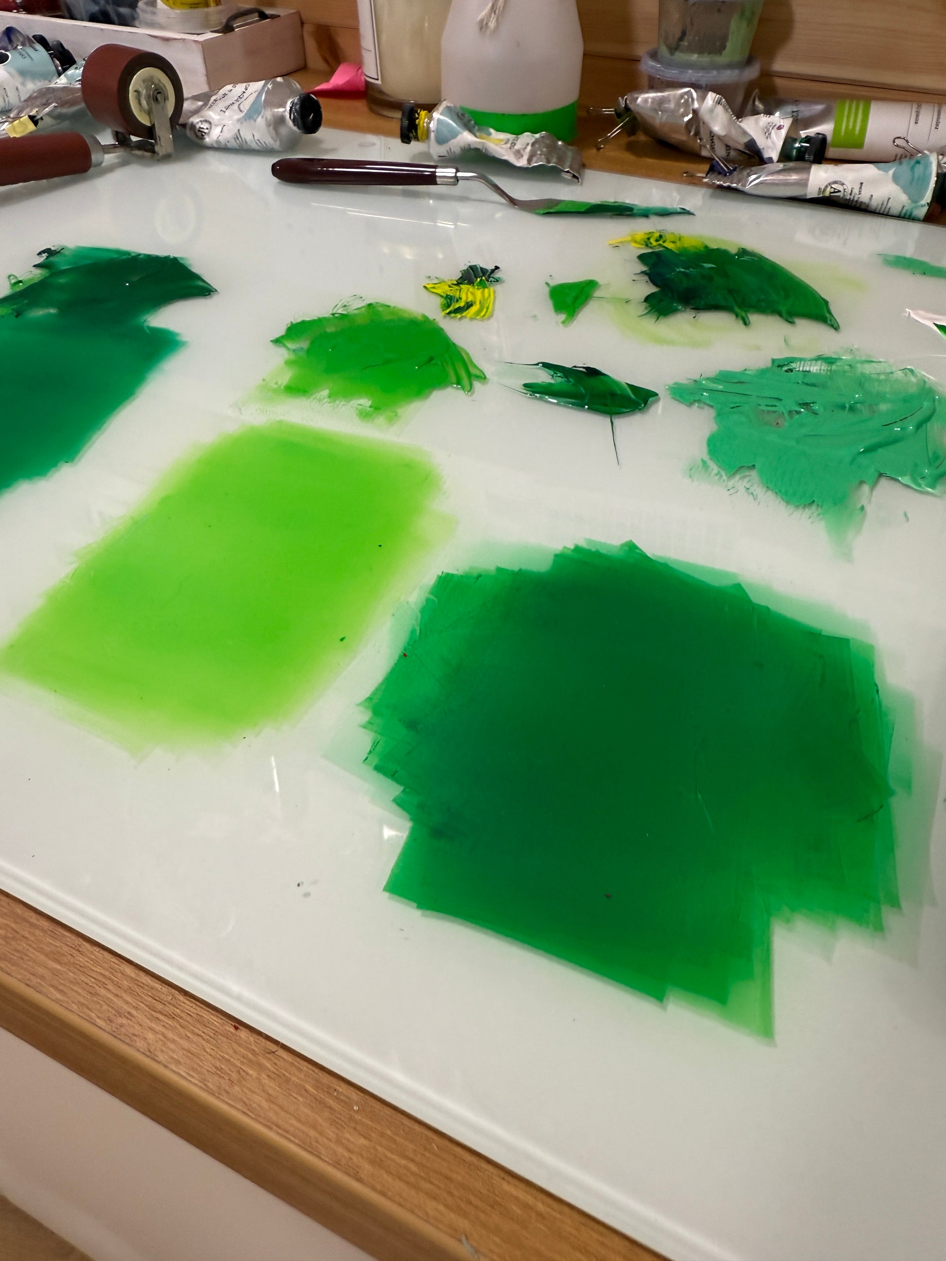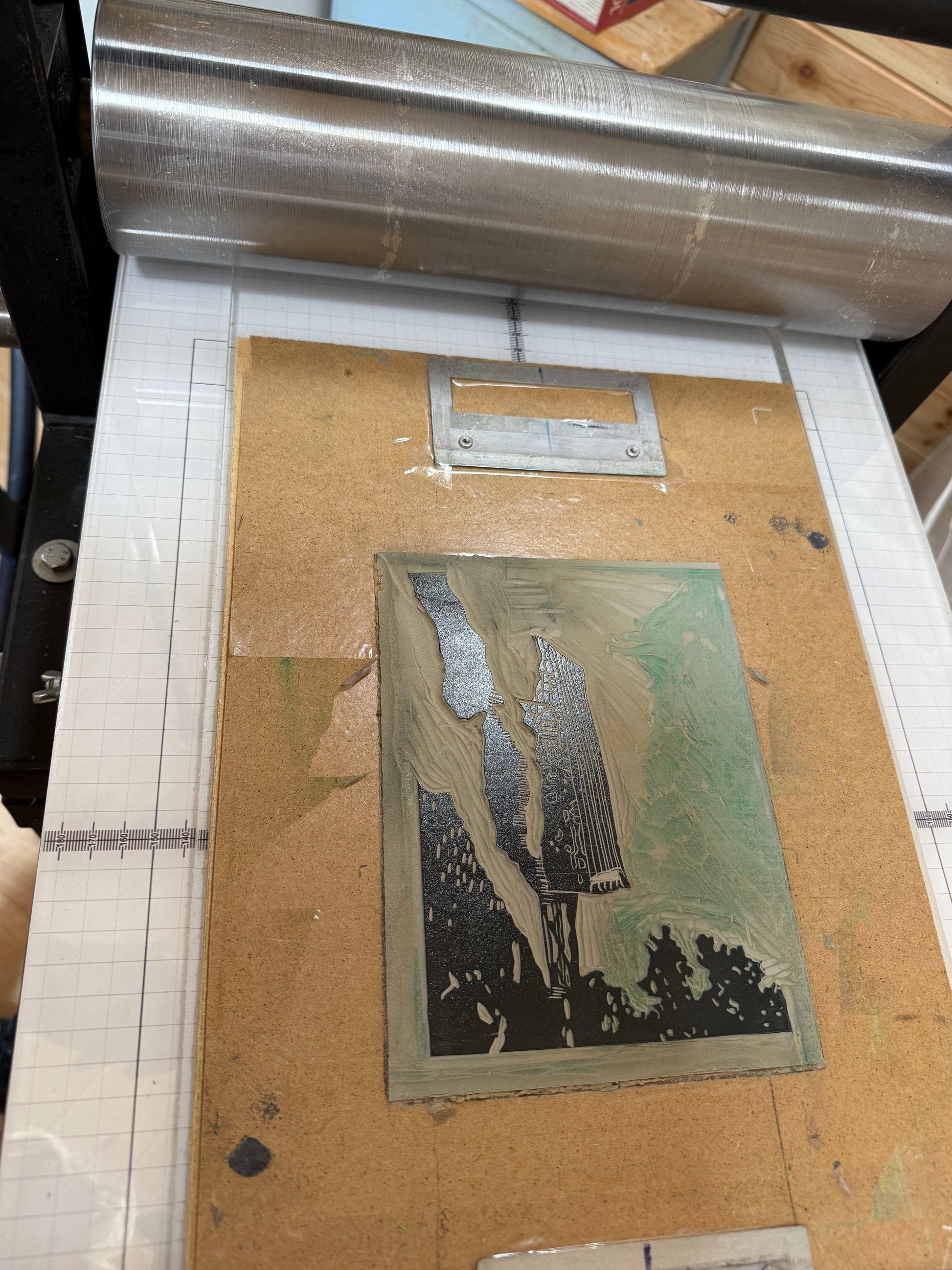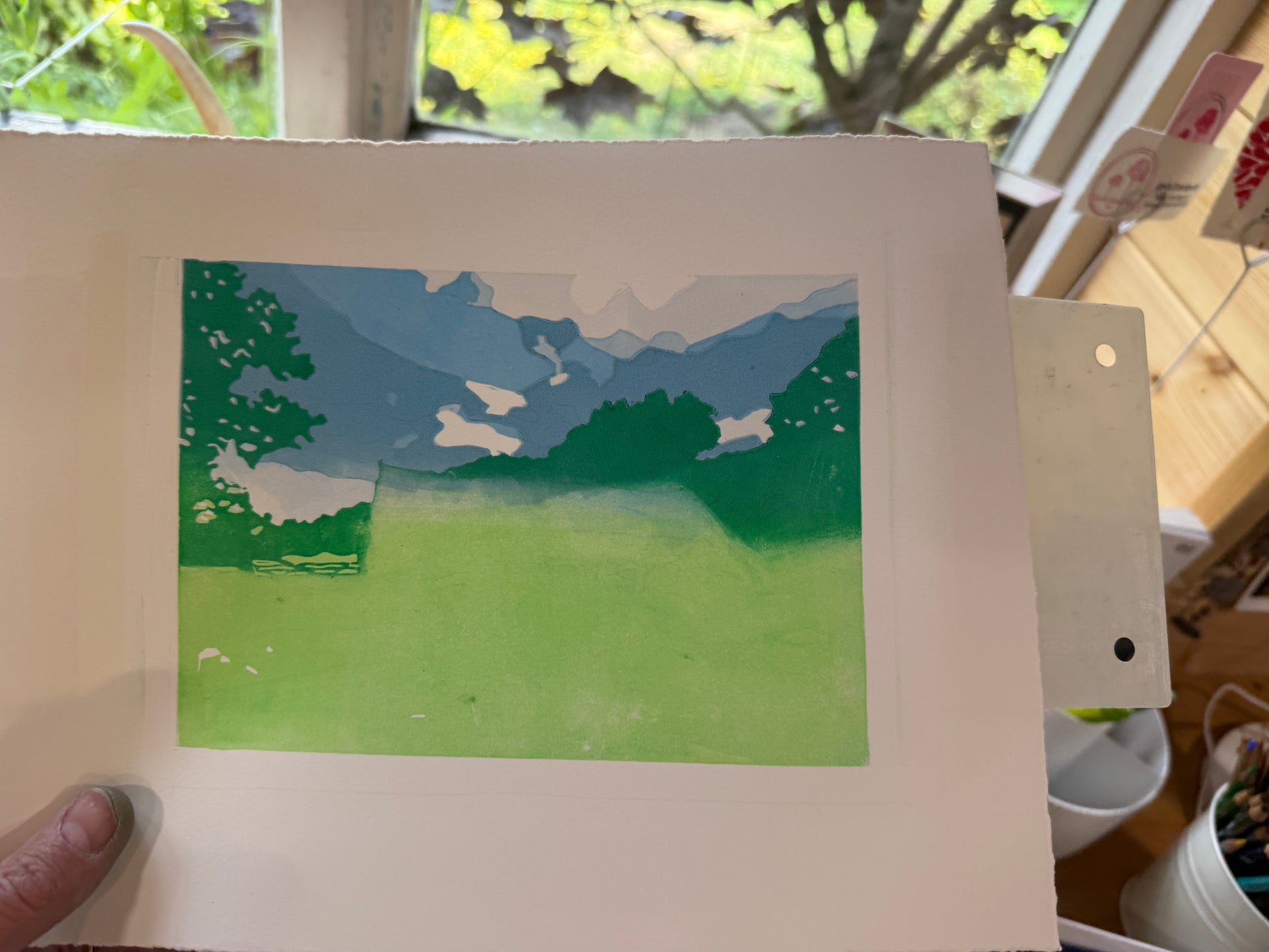 Colour reduction linocut print